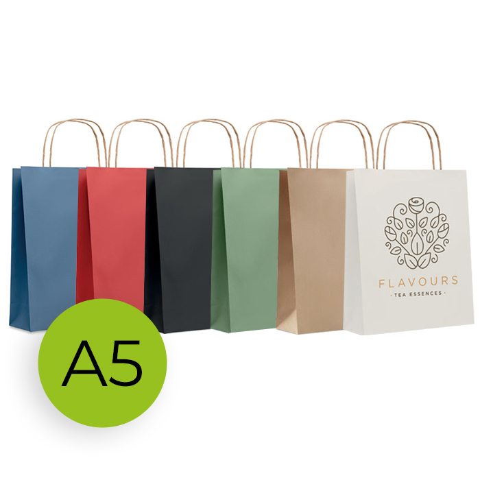 Small but powerful: this colored bag made from recycled paper is perfect for handing out products or informational materials. Thanks to the compact size and fresh look, it’s an easy way to make a sustainable impact.