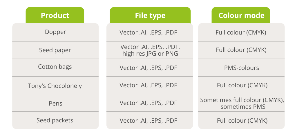 When printing your sustainable gifts, some technical terms come into play. We ask for vector files and PMS colours, and talk about bleed and solid fills. In this blog you’ll read all about the printing jargon and get practical tips for supplying artwork.