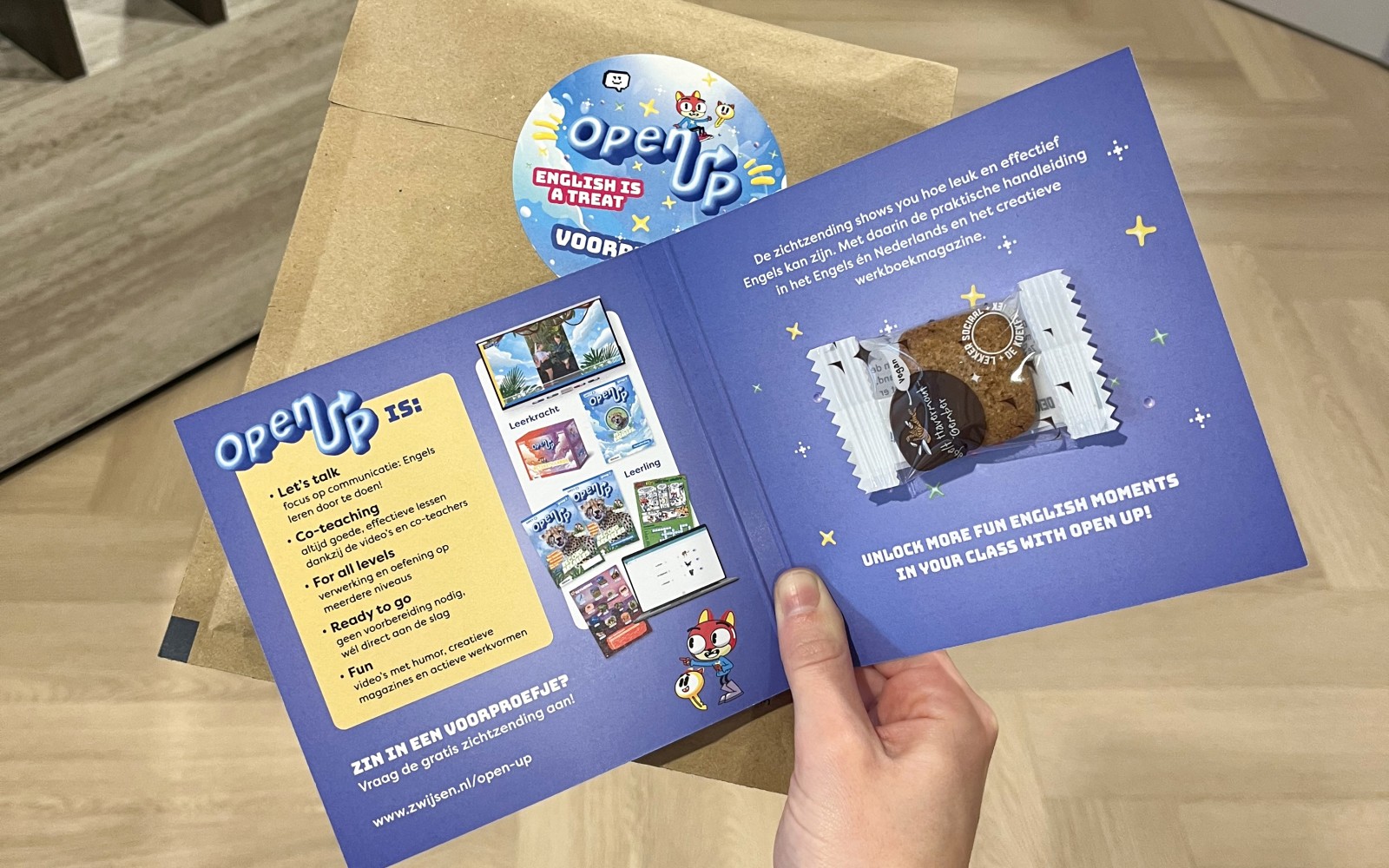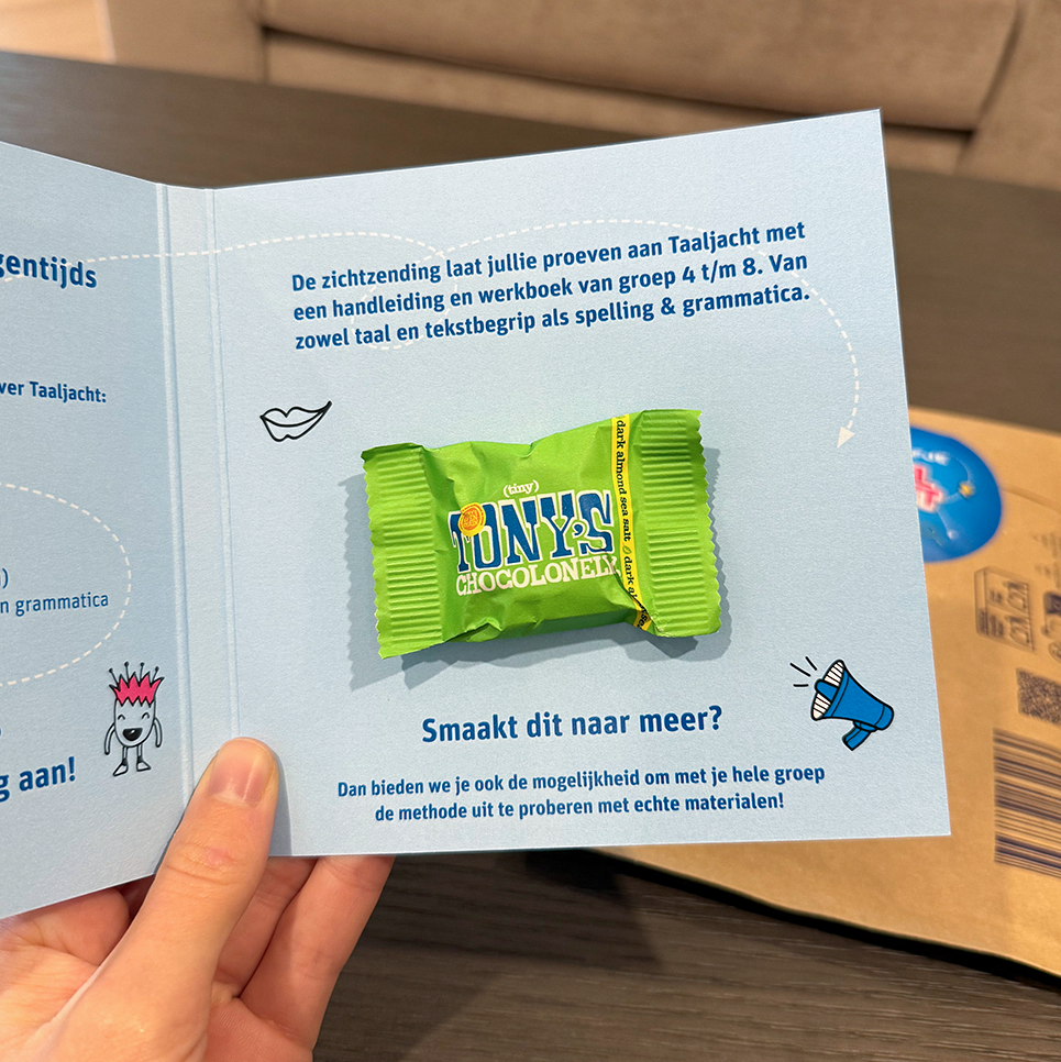 The strength of a corporate gift does not lie in its size, but in the thought behind it. The letterbox packages we organised for Uitgeverij Zwijsen demonstrate exactly that. For schools throughout the Netherlands, we assembled sustainable packages including cards, brochures and small gifts. Think of seed confetti, a card with a Tiny Tony or a biscuit from De Koekfabriek. Everything was carefully selected, neatly packed in FSC-certified envelopes and finished with a full-colour printed sealing sticker. Compact, yet complete.