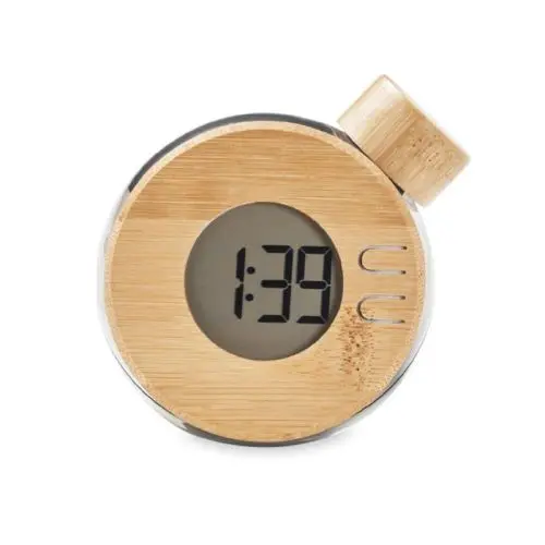 A desk clock is always handy for quickly checking the time. This digital desk clock runs on water energy, so no batteries are needed. Simply fill the clock with water and the digital display is activated immediately. An original and eco-friendly corporate gift! Thanks to the bamboo details, the clock has a stylish and clean look.