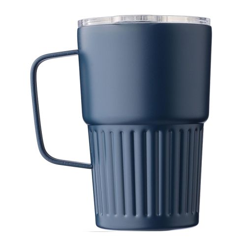 Heads up: this travel mug is an absolute winner! Made from recycled stainless steel, it’s tough, sustainable and built to last. The double-wall insulation keeps your drinks at the perfect temperature. Its ribbed exterior adds extra grip and a unique look. Thanks to the sturdy handle and handy slide lid, it's ideal for life on the go. Choose from 7 vibrant colours.